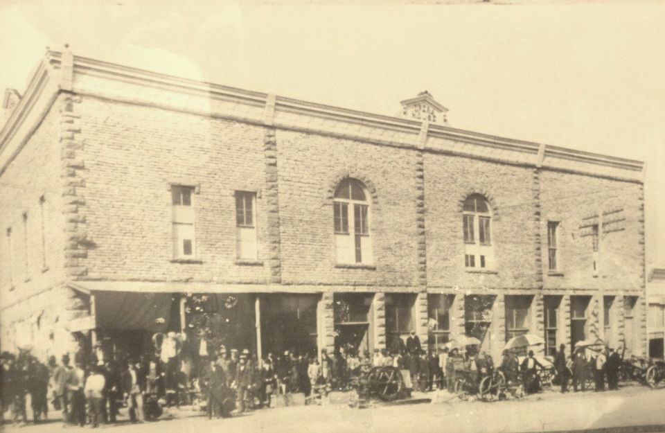 The Sedan Opera House was first constructed as a two story wood framed building by W. H. Bryan in 1885 where he operated a mercantile store in the bottom of the building, specializing in wagons, buggies and implements.
